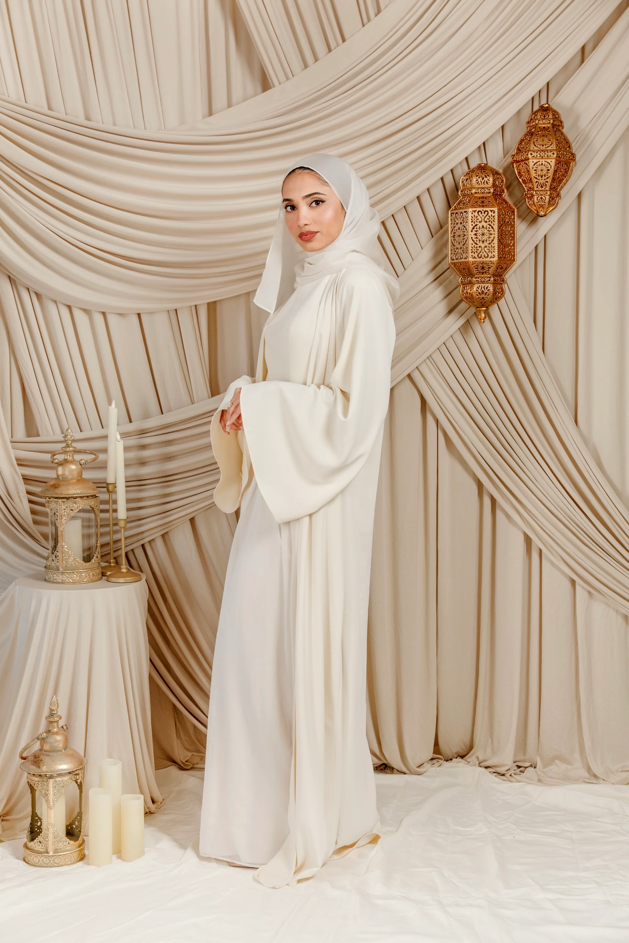 Cream Low Waisted Abaya Set (2 pcs)
